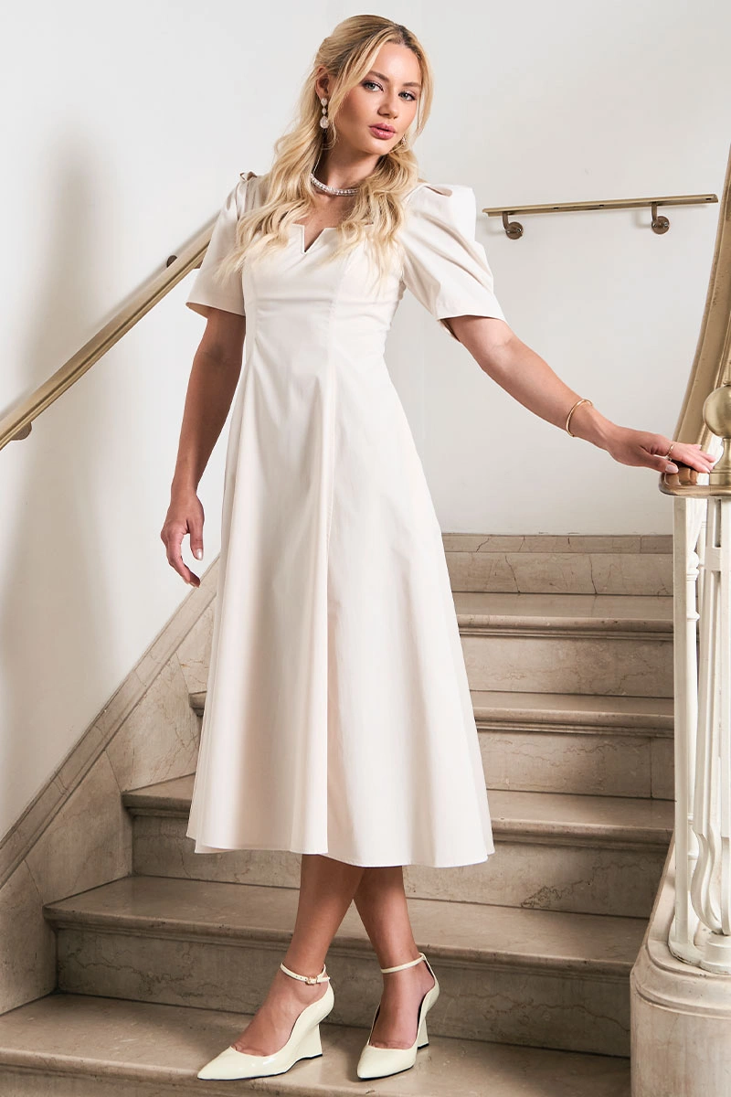 The Dafny dress combines lightness and elegance with its impeccable fit. The V-neck and sleeves add a special touch, while the slightly flared skirt ensures movement and fluidity. With its flawless design, it's the perfect choice for special events or charming outfits. Pair it with delicate sandals and accessories for an unforgettable look!